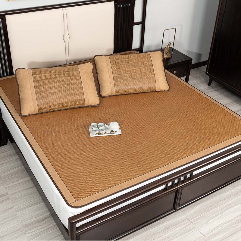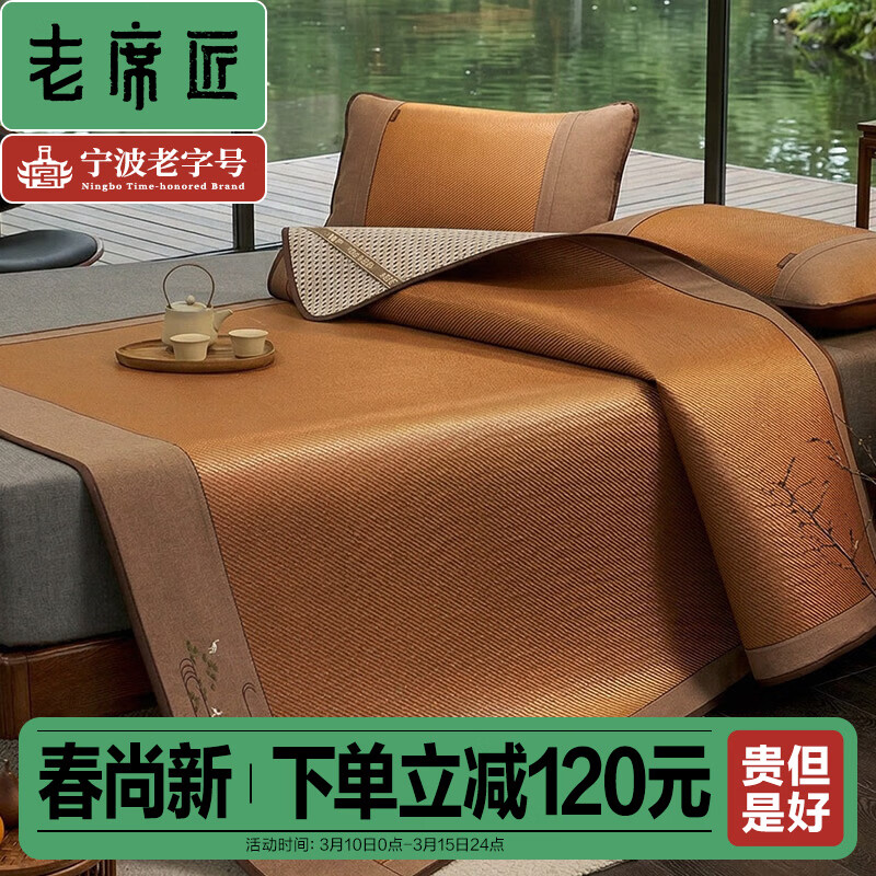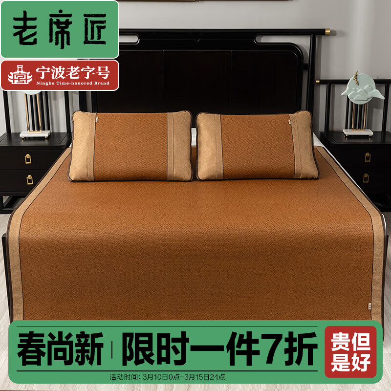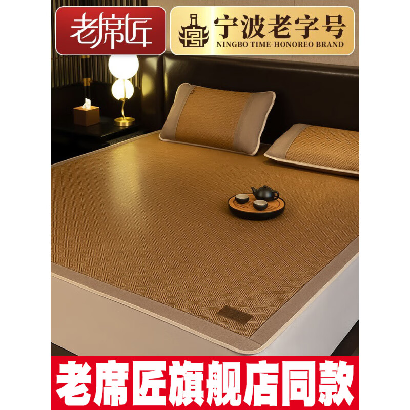 老席匠凉感冰肤席A类冰丝席凉席双人三件套土耳其咖150*200【可机洗】