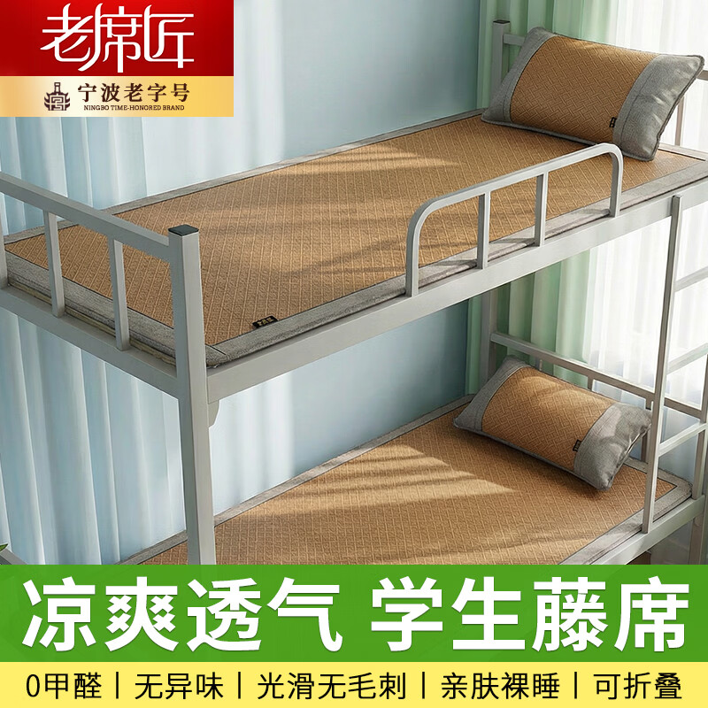老席匠凉席学生宿舍寝室单人藤席加厚夏季可折叠90大学生冰丝席子 学生藤席丨3D加厚款 单件装 1.2米床 200cm*120cm
