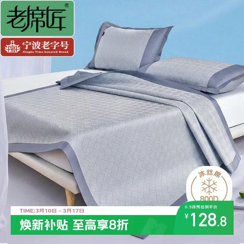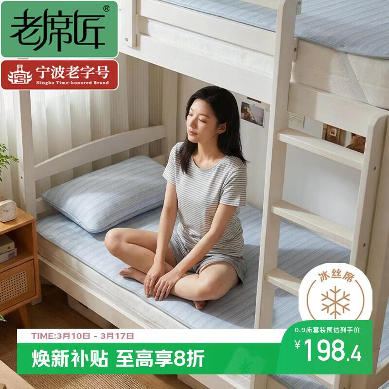 老席匠冰肤学生席A类冰丝席凉席单人两件套蓝色90*200【可机洗】