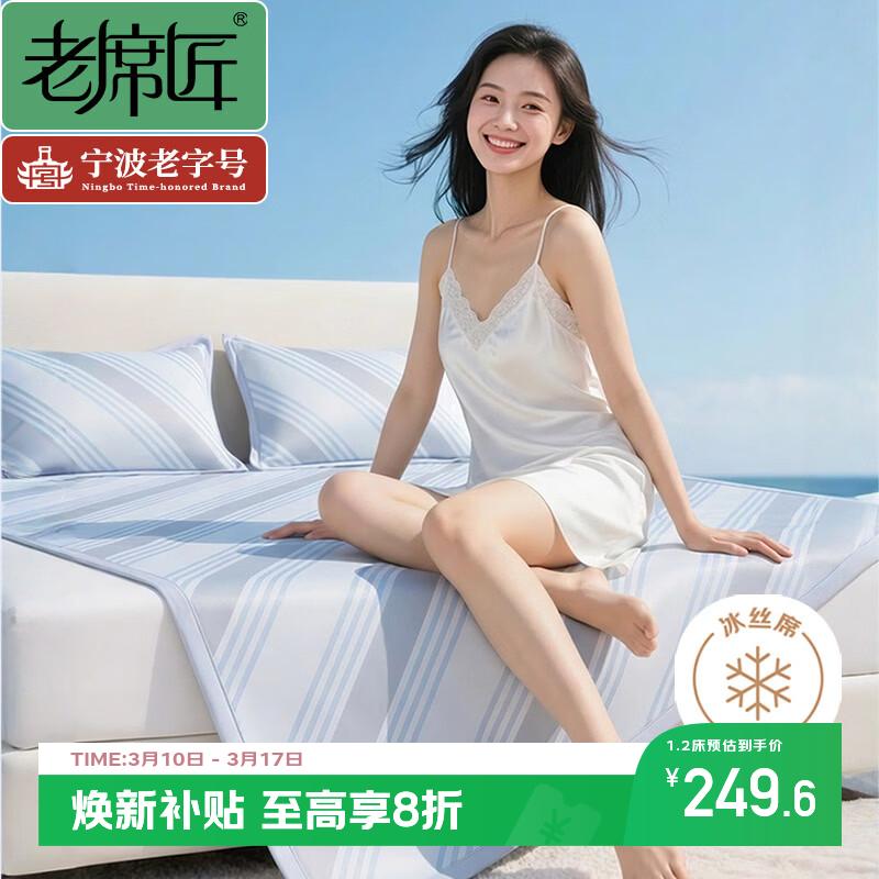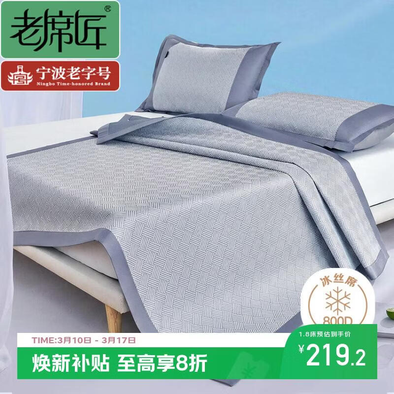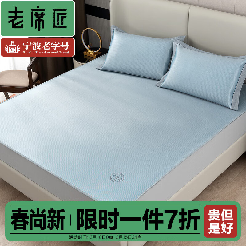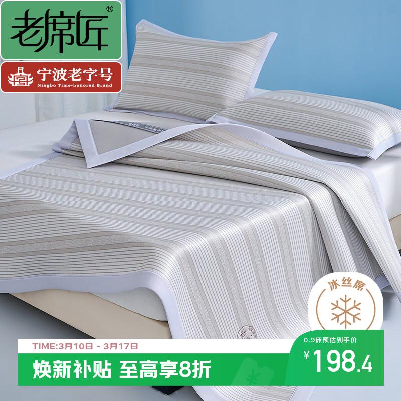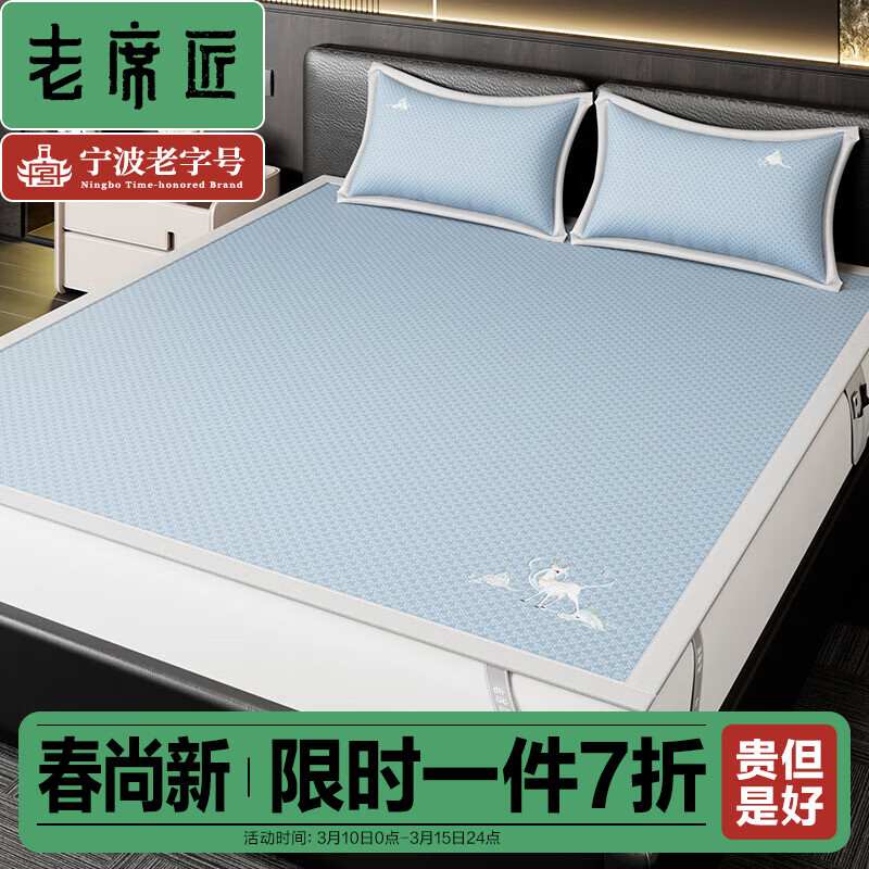 老席匠A类冰丝席凉席7A抗菌凉感席子三件套福鹿床笠款180*200【可机洗】