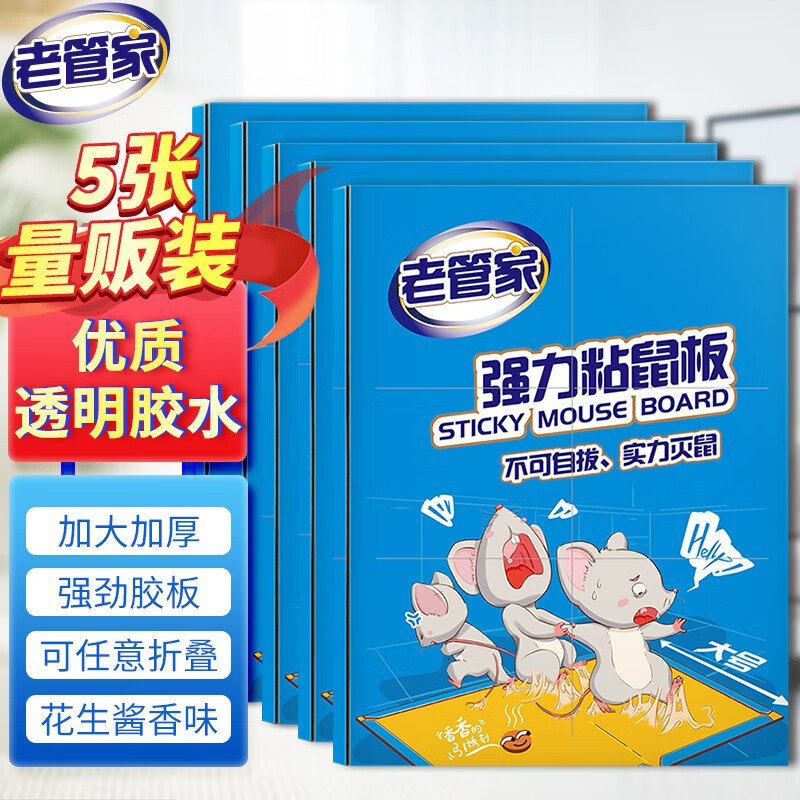老管家老鼠贴超强力大老鼠粘贴代替杀灭老鼠药引诱捕鼠器老鼠夹 5张装