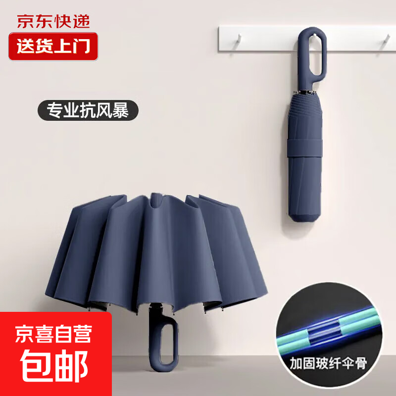 等效144骨雨伞男折叠挂钩全自动伞女学生大防晒晴雨两用太阳伞 等效144骨自动开收【藏青】