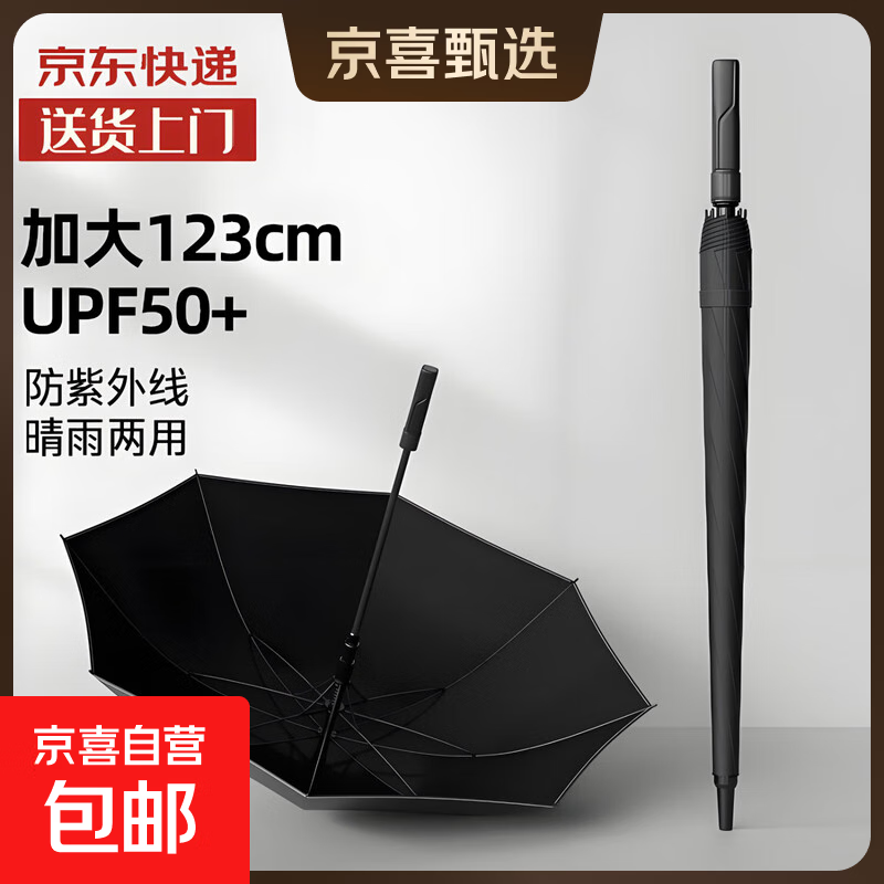 超大雨伞125cm三人伞男女防晒黑胶半自动高尔夫太阳伞晴雨两用伞 半自动黑色-疏水伞套【适合2-3人】