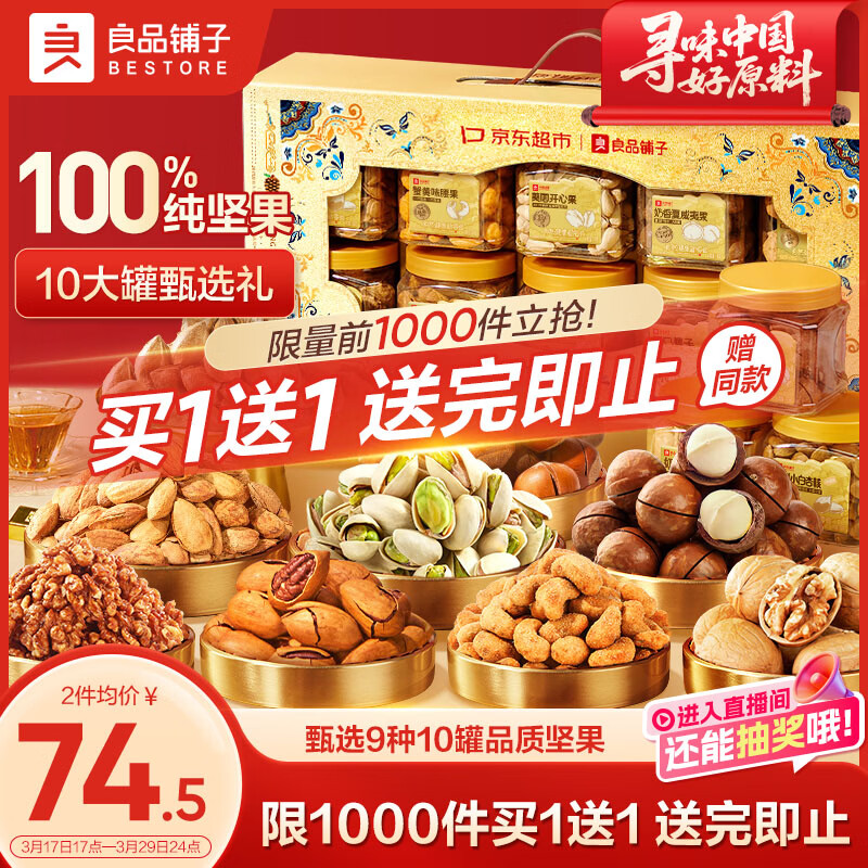 良品铺子纯坚果礼盒1605g/10罐!零食礼包坚果年货礼盒节日春节送礼团购