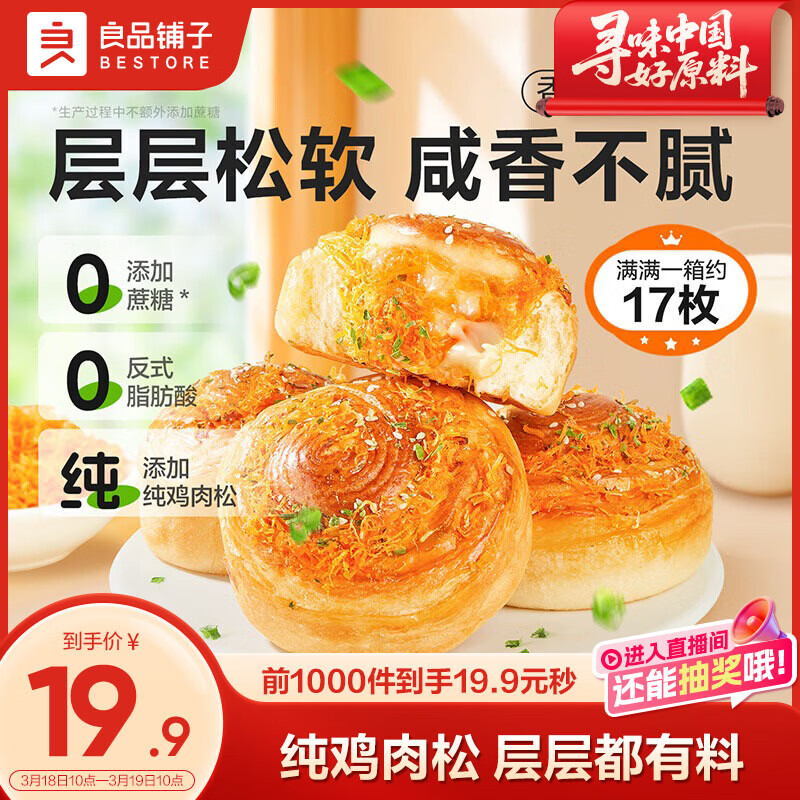 良品铺子香葱肉松手撕面包800g早餐面包代餐点心休闲学生零食囤货下午茶