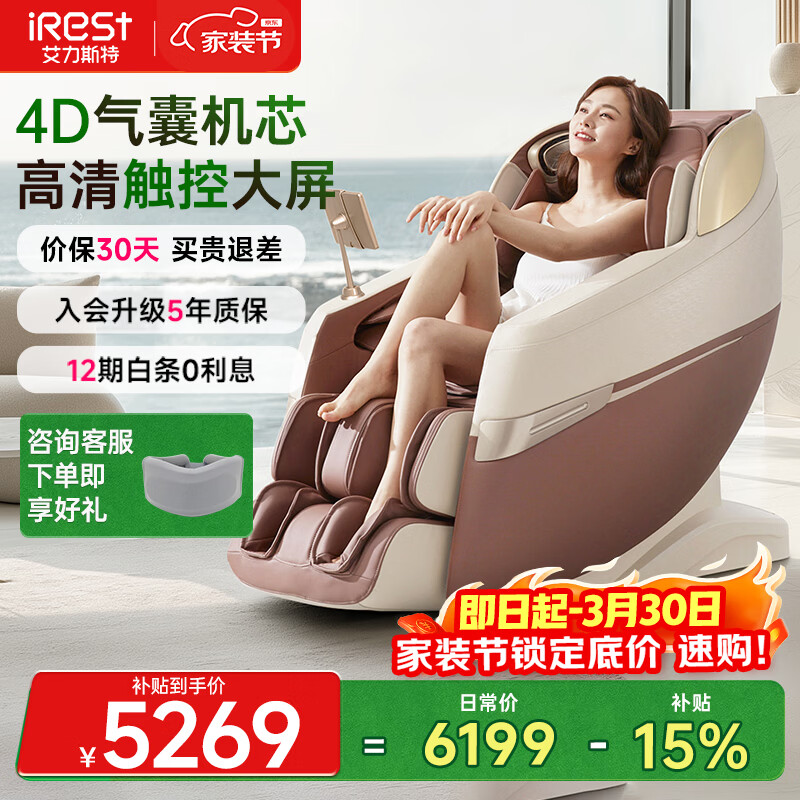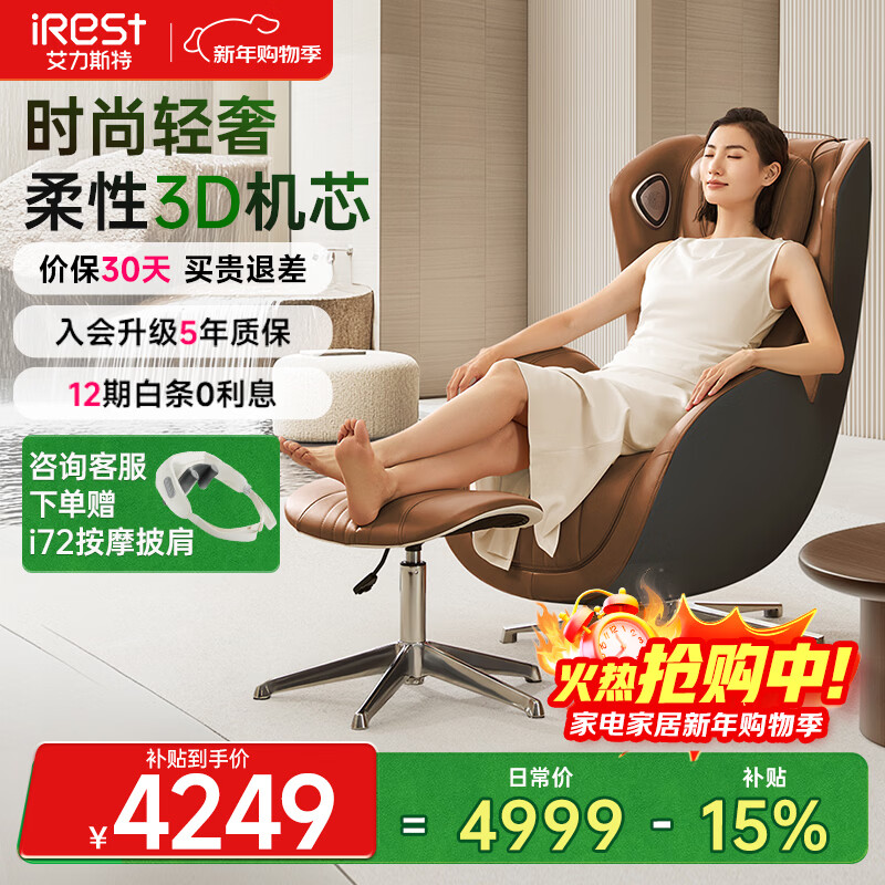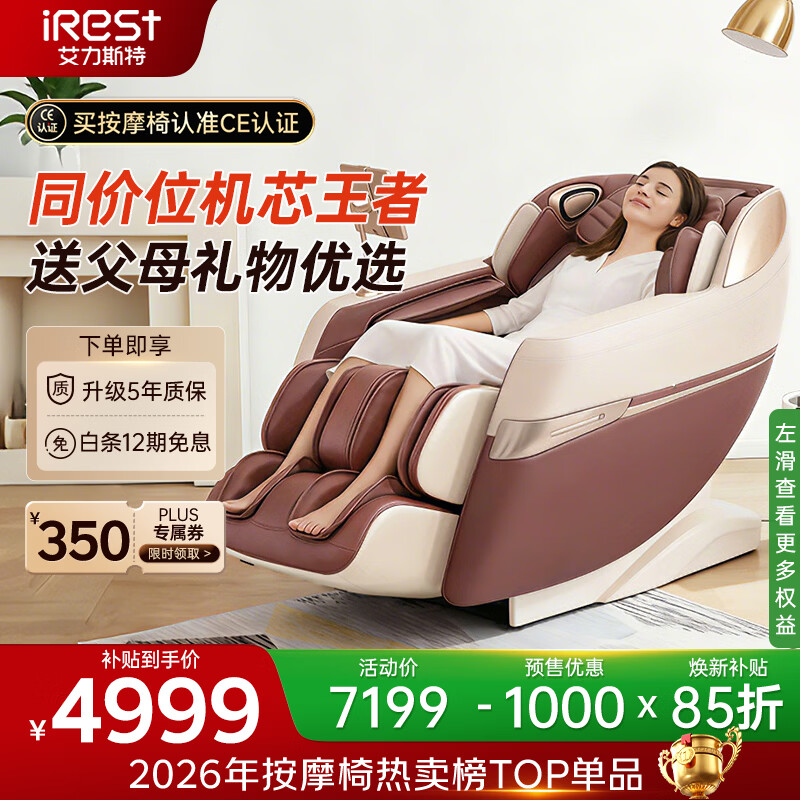 艾力斯特(iRest)按摩椅家用全身按摩太空舱2026全自动老人用按摩沙发椅送父母生日礼物R2pro 琥珀棕【自营专供】
