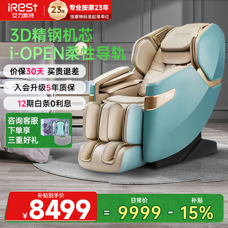艾力斯特(iRest)按摩椅国标柔性导轨家用全身太空舱全自动多功能零重力智能电动按摩人体工学S750 蒂芙蓝