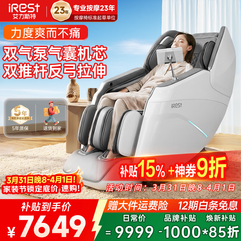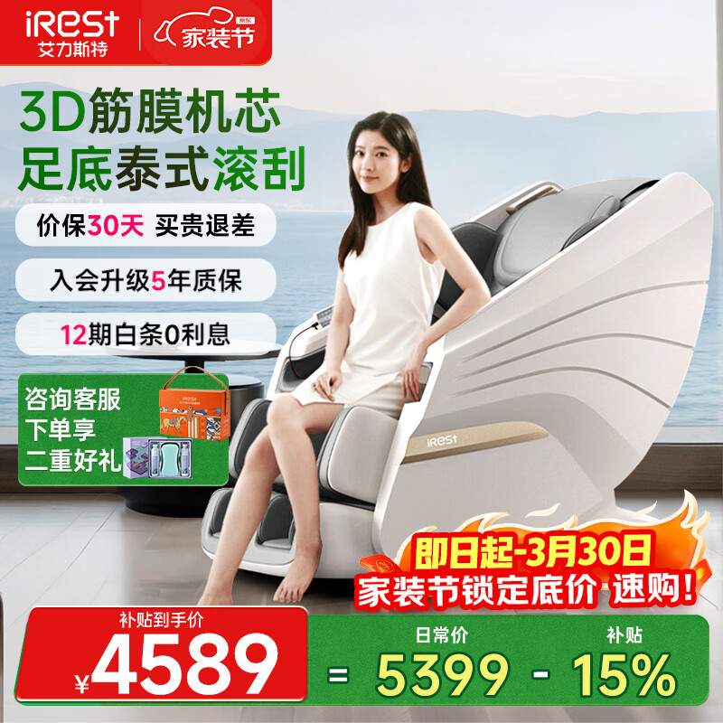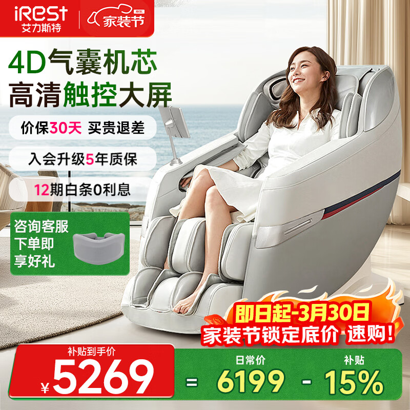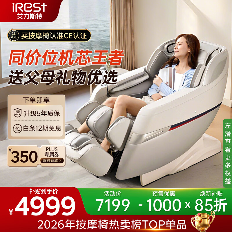 艾力斯特(iRest)按摩椅家用全身按摩太空舱2026全自动老人用按摩沙发椅送父母生日礼物R2pro 皓月白【自营专供】