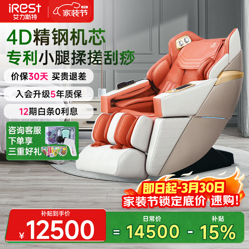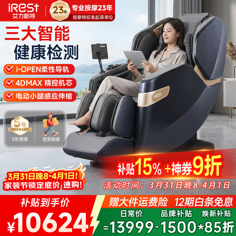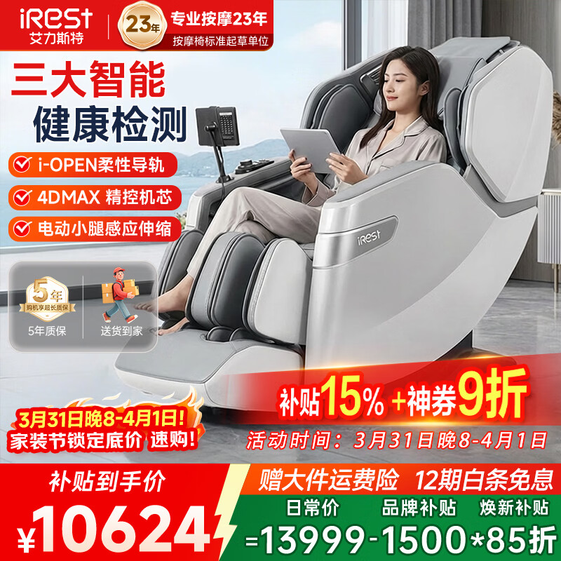 艾力斯特(iRest)4D+3D双机芯按摩椅家用全身豪华立体全自动太空舱零重力老人电动智能多功能爸妈生日礼物M5 【4D双芯+双推杆拉伸+健康检测】象牙白升级款
