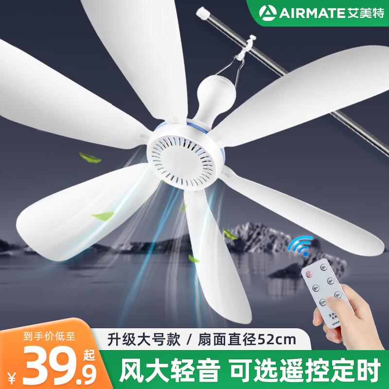 艾美特(AIRMATE)小吊扇学生宿舍床上电风扇大风力小风扇蚊帐扇微风吊扇电扇 大号款+2米调速线+遥控 标准款