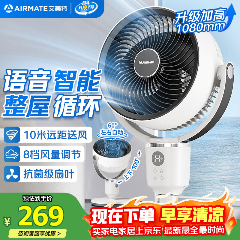 艾美特(AIRMATE)空气循环扇电风扇家用桌面台式落地扇直流变频暴风循环小风扇立体摇头语音智能大风量电扇 SRD200