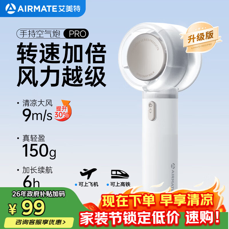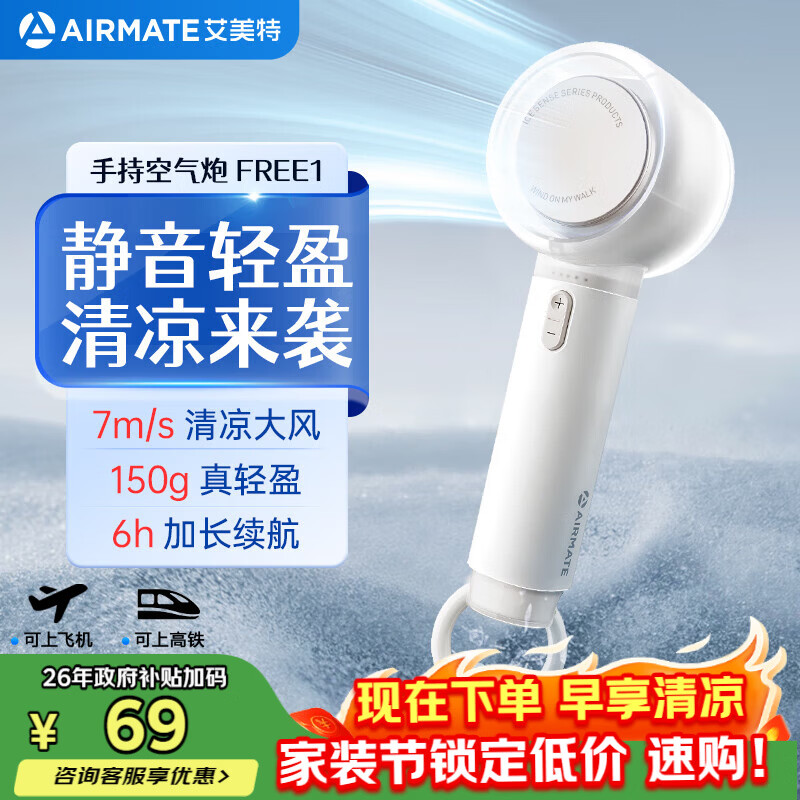 艾美特风宝小风扇手持风扇小风炮便携式迷你充电风扇户外小型风扇超长续航电扇开学季军训宿舍 FREE1 PRO