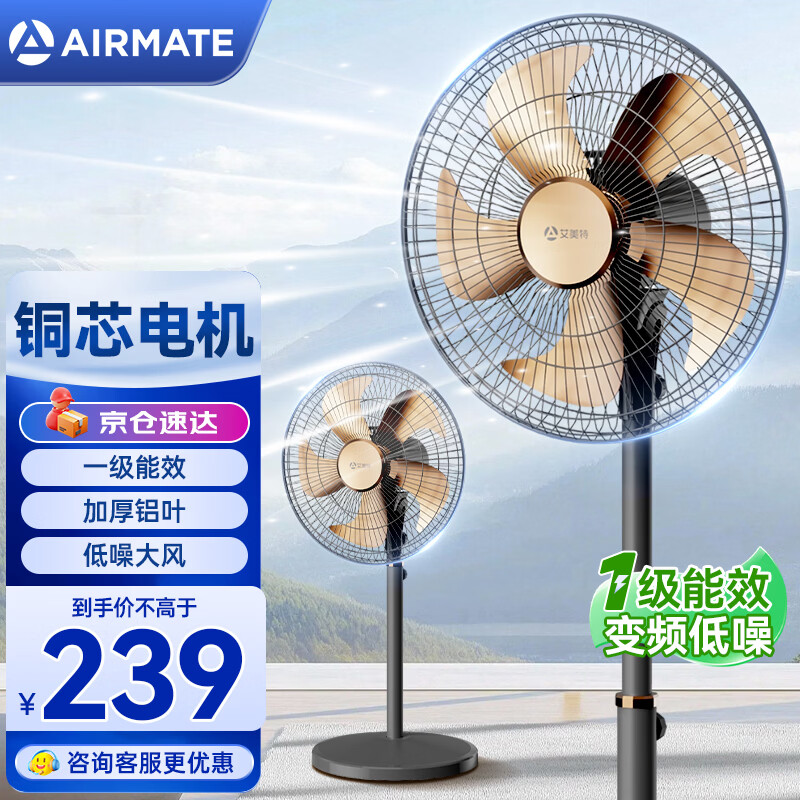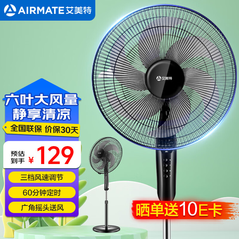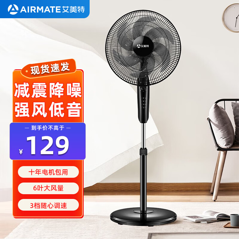 艾美特(AIRMATE)艾美特电风扇家用强力落地风扇大风力电扇节能省电摇头台扇宿舍 黑色六叶爆款推荐