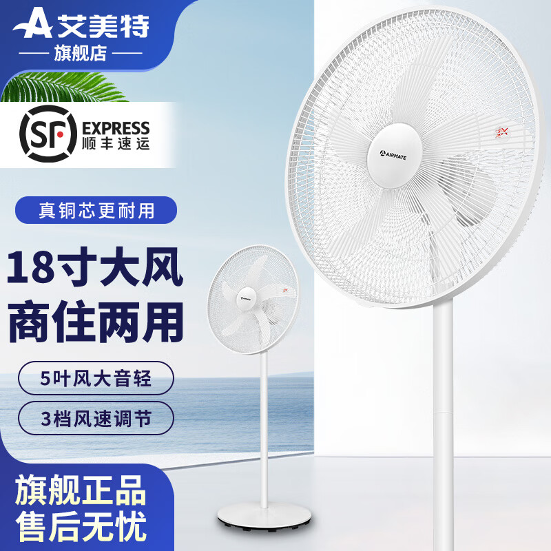 艾美特电风扇落地式落地风扇大功率强力工厂大风扇工业落地扇家用 18寸【商住两用】简约皓月白