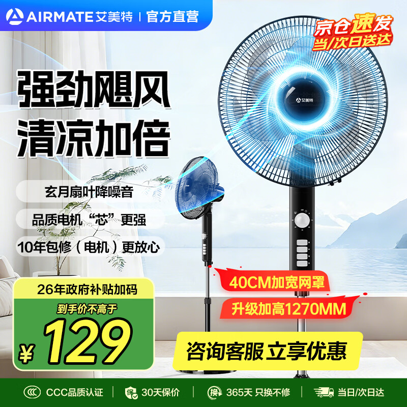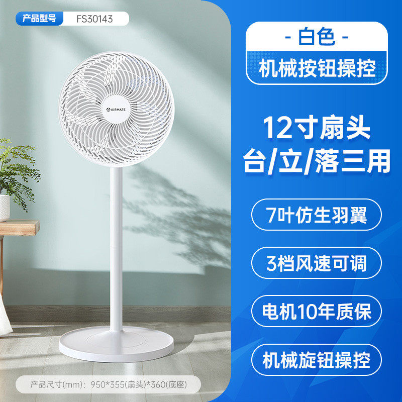 艾美特(AIRMATE)【】艾美特电风扇家用节能落地扇轻音大风量风扇FS30143 白色机械款