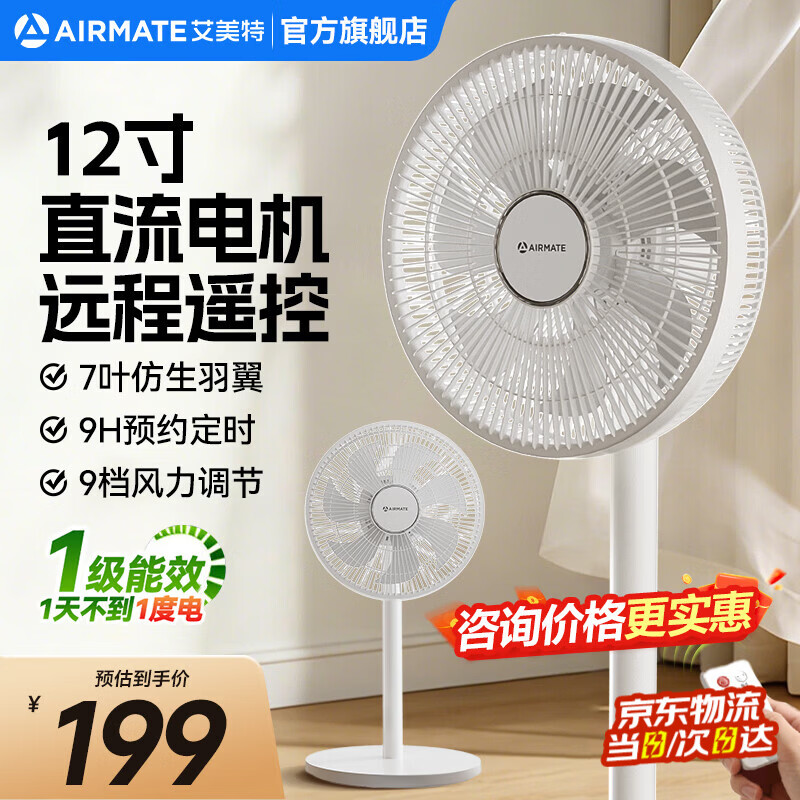 艾美特电风扇落地扇家用12寸轻音节能省电遥控摇头音静电扇卧室宿舍立式7叶强力落地风扇 遥控+触控【7叶/9档/直流/一级能效】
