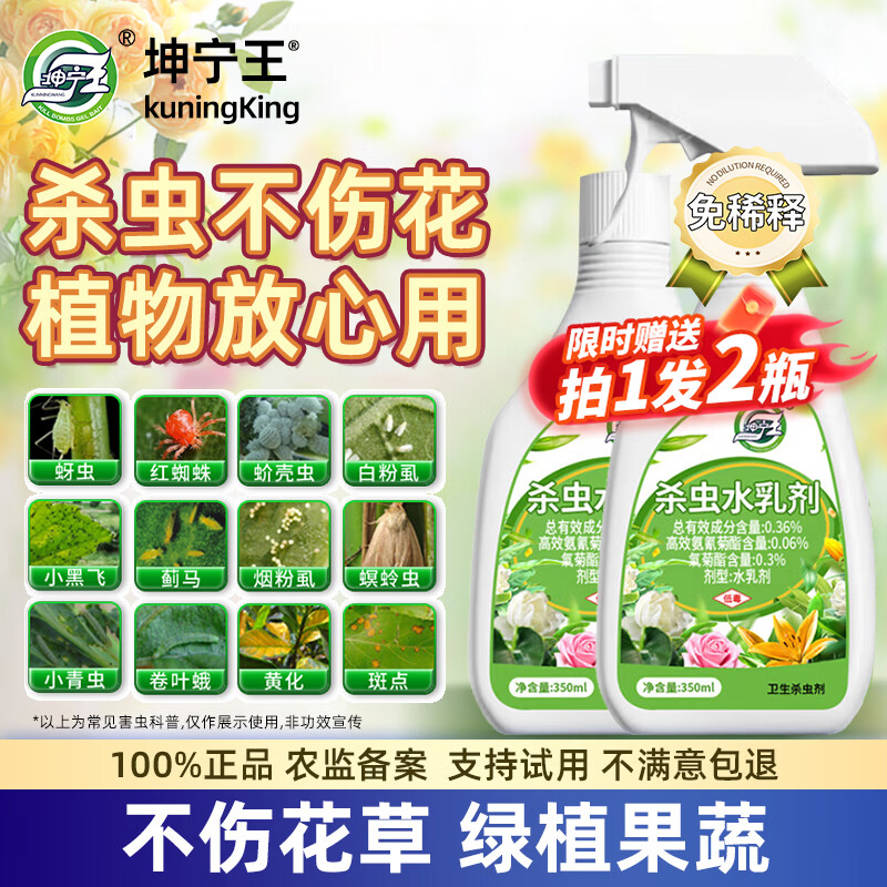 坤宁王花卉杀虫剂植物土壤绿蔬菜蚜虫小黑飞月季花草红蜘蛛蚧壳虫2瓶
