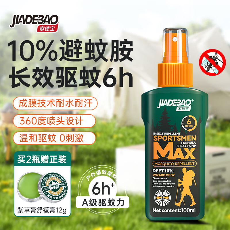 家德宝(JIADEBAO)驱蚊喷雾100ml 户外驱蚊液防蚊花露水 10%避蚊胺神器 山野清新