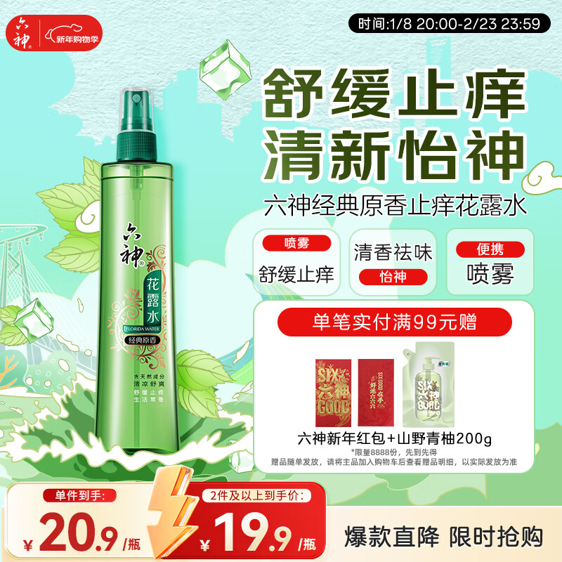 六神【止痒喷雾】经典原香花露水180ml*1(便携喷雾 舒缓 祛味)