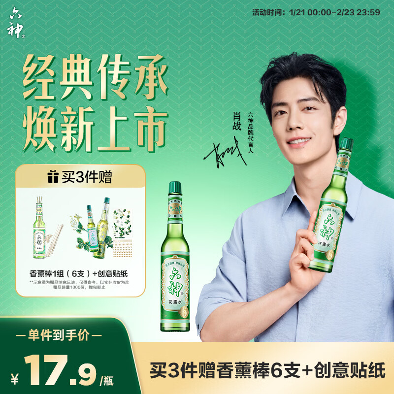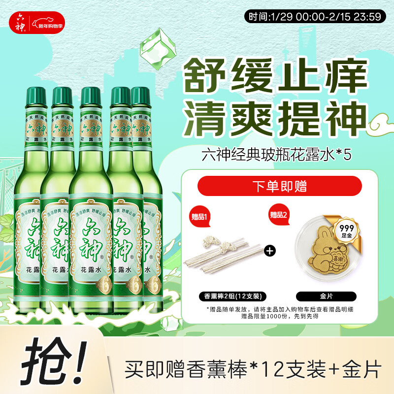 六神【经典玻璃瓶】舒缓止痒花露水195ml*5 清香祛味止痒 肖战同款