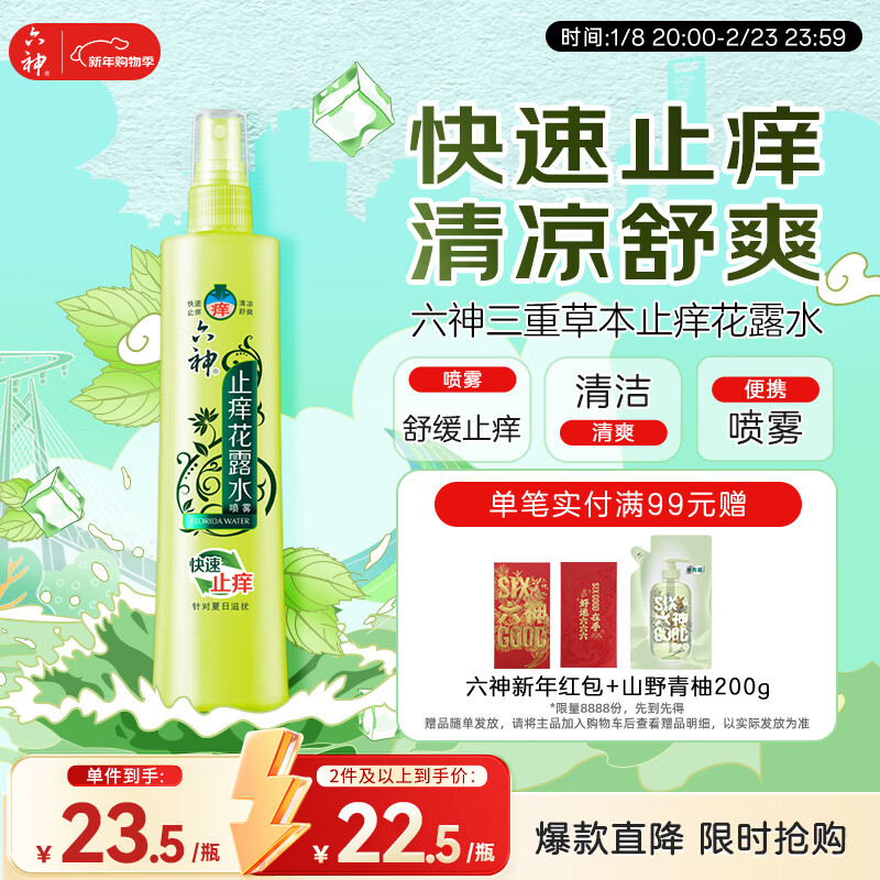 六神【止痒喷雾】三重草本花露水180ml*1(舒缓 清爽 新老包装随发)
