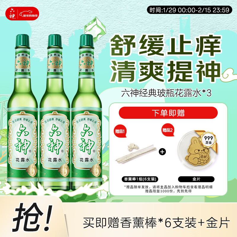 六神【经典玻璃瓶】舒缓止痒花露水195ml*3 肖战同款 祛味 经典原香