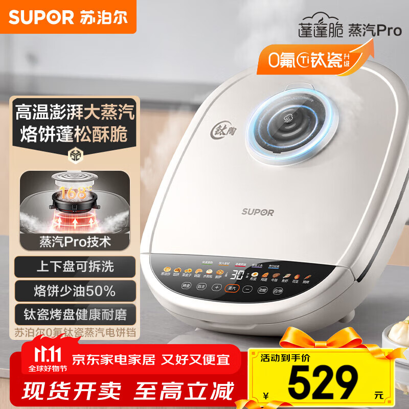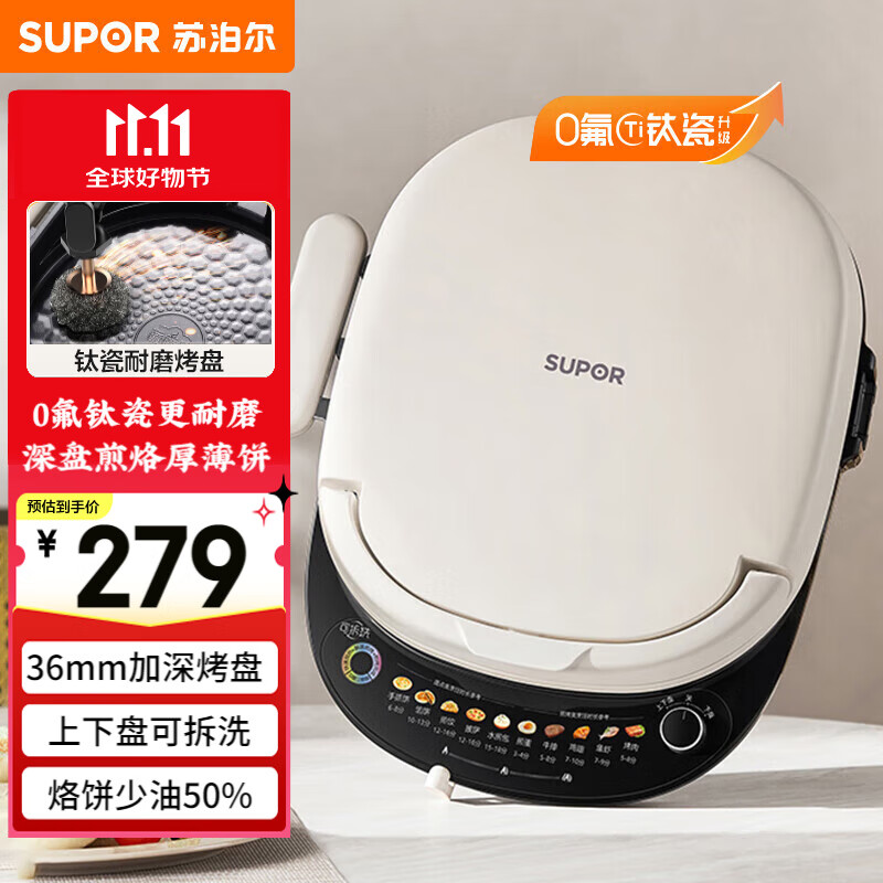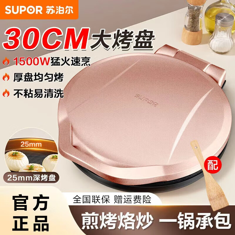 苏泊尔(SUPOR)电饼铛家用可拆洗双面加热煎饼锅烙饼锅早餐机30mm加大加深抗菌不粘可立方放 30mm加深可拆洗烤盘/可立放