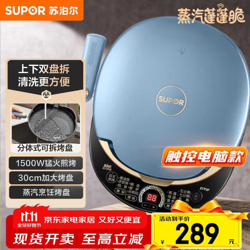 苏泊尔(SUPOR)电饼铛 上下盘可拆洗 家用双面加热三明治机 早餐机多功能蒸汽煎烤机电饼档 触控智能 JD30RQ859