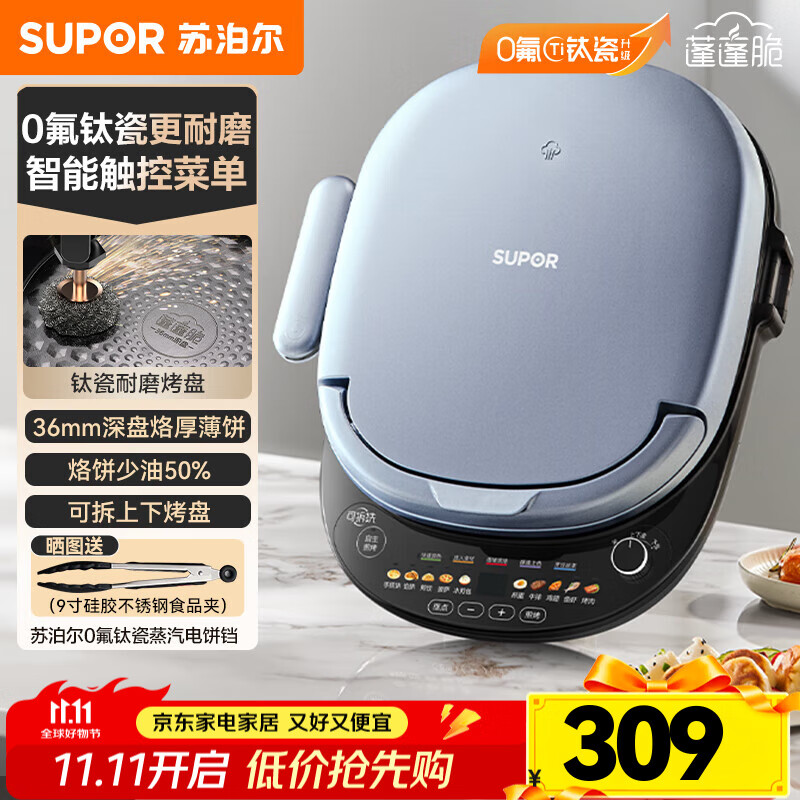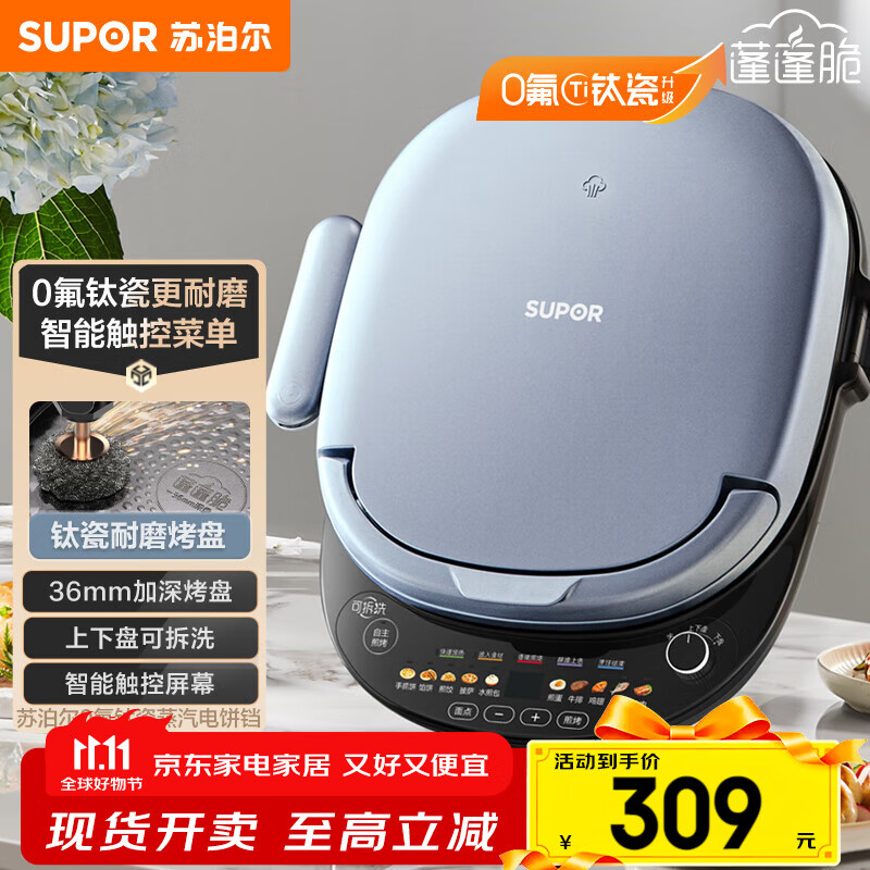 苏泊尔(SUPOR)电饼铛 上下盘可拆洗 家用智能电饼档双面加热 煎烤机 0氟钛瓷烤盘 触控面板 JD30RQ807