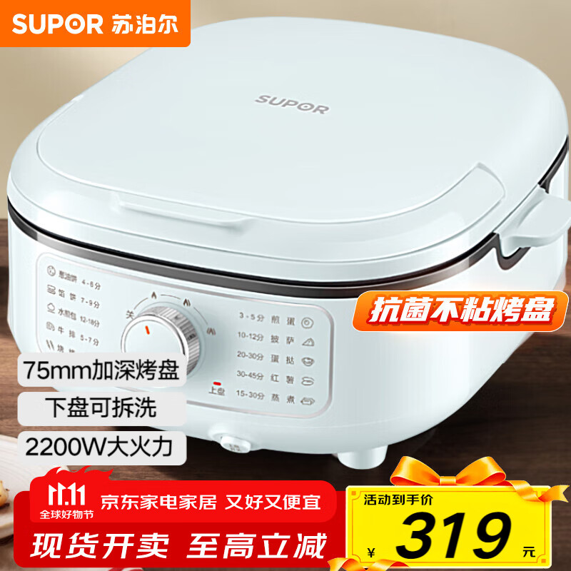 苏泊尔(SUPOR)电饼铛家用煎烤机单面煎饼锅三明治烙饼锅早餐机煎烤机电火锅多功能涮烤加深烤盘 JT30A819