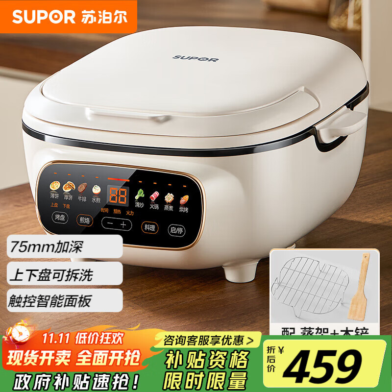 苏泊尔(SUPOR)电饼铛 电饼档家用上下可拆 蒸锅火锅炒锅 煎烙饼 三明治早餐机75mm加深 触控智能面板 JD2828R892