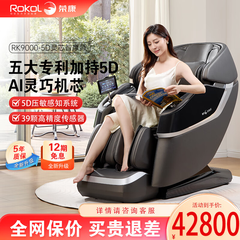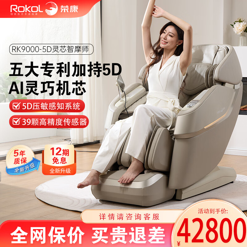 荣康RK9000按摩椅全身家用电动真5D机芯豪华按摩沙发 柔雾白