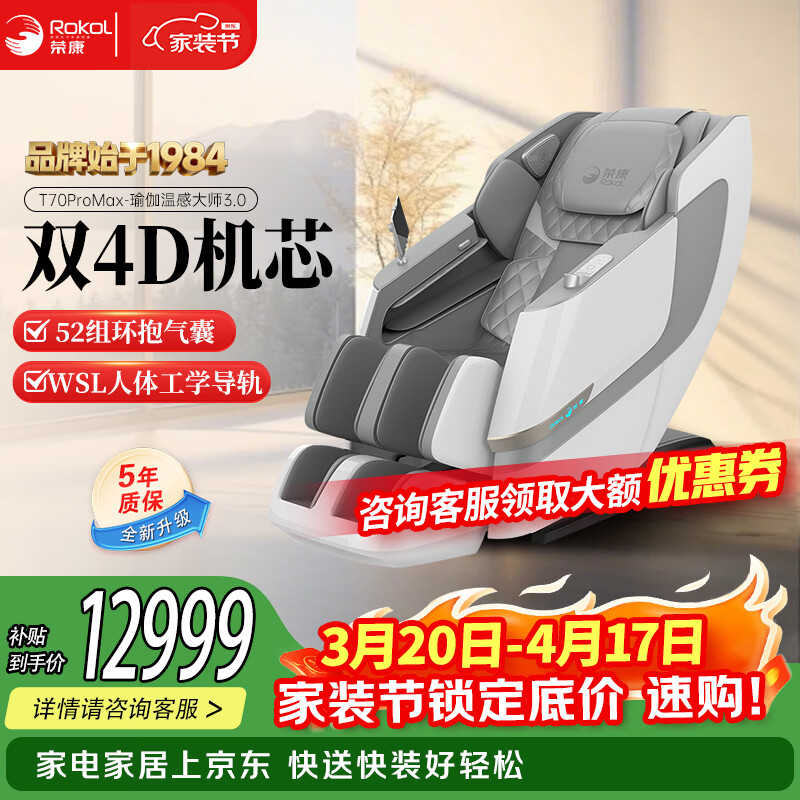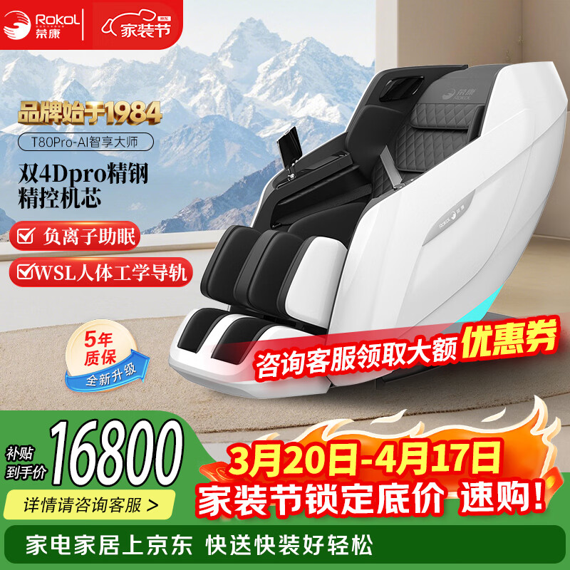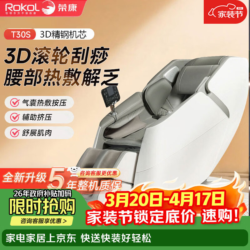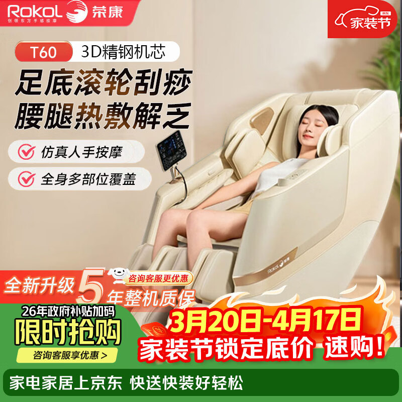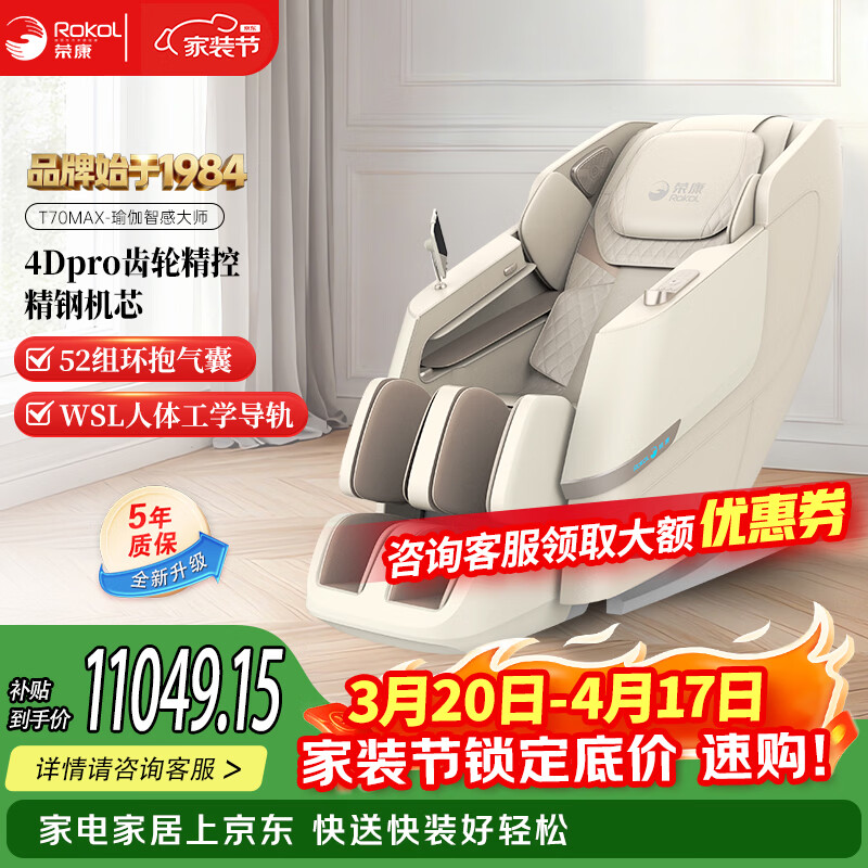 荣康【爆款热销】【国补减15%】荣康T80Pro按摩椅4D双机芯2026家用全身多功能WSL导轨电动小腿 【双4D齿轮机芯】-T80PRO-皓月白
