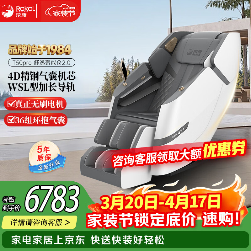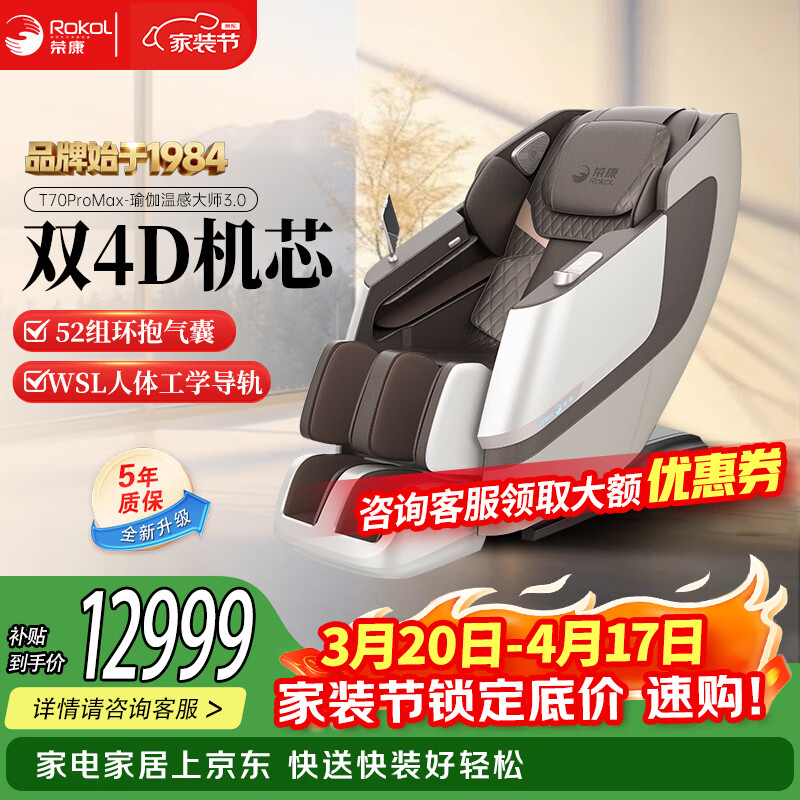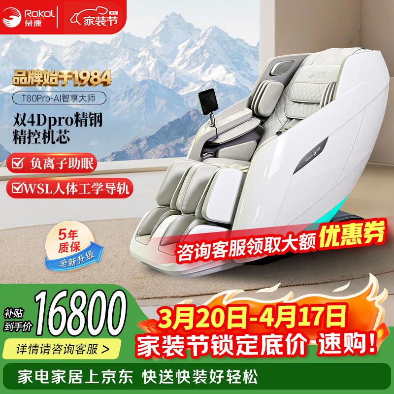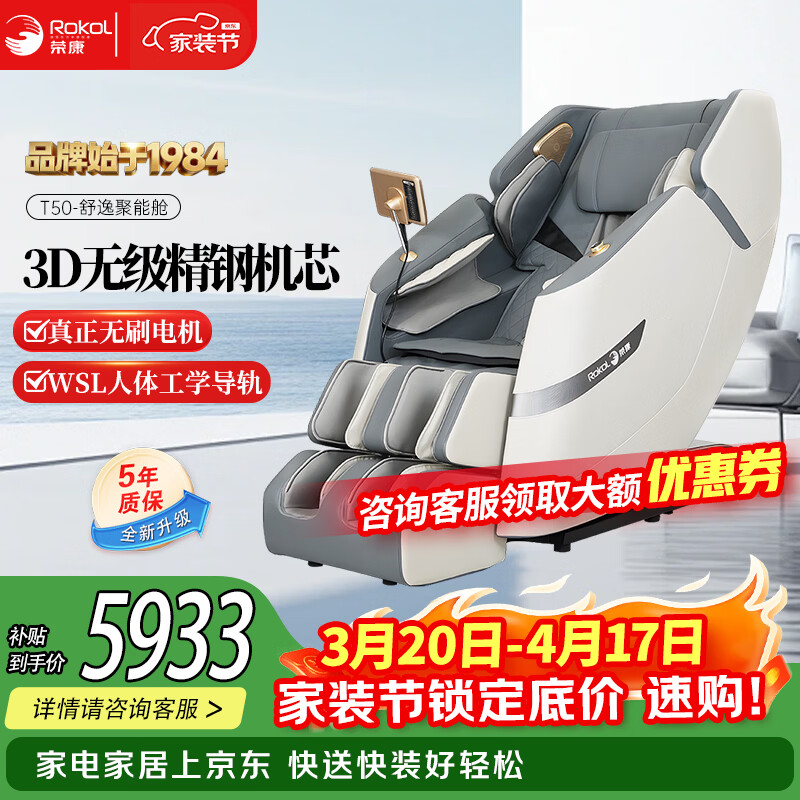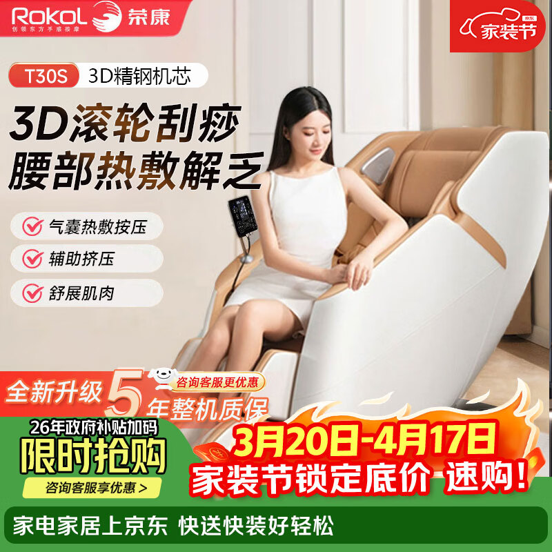 荣康【爆款热销】【国补减15%】荣康T80Pro按摩椅4D双机芯2026家用全身多功能WSL导轨电动小腿 【双4D齿轮机芯】-T80PRO-皓月白