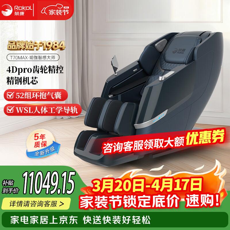 荣康【爆款热销】【国补减15%】荣康T80Pro按摩椅4D双机芯2026家用全身多功能WSL导轨电动小腿 【双4D齿轮机芯】-T80PRO-曜影黑