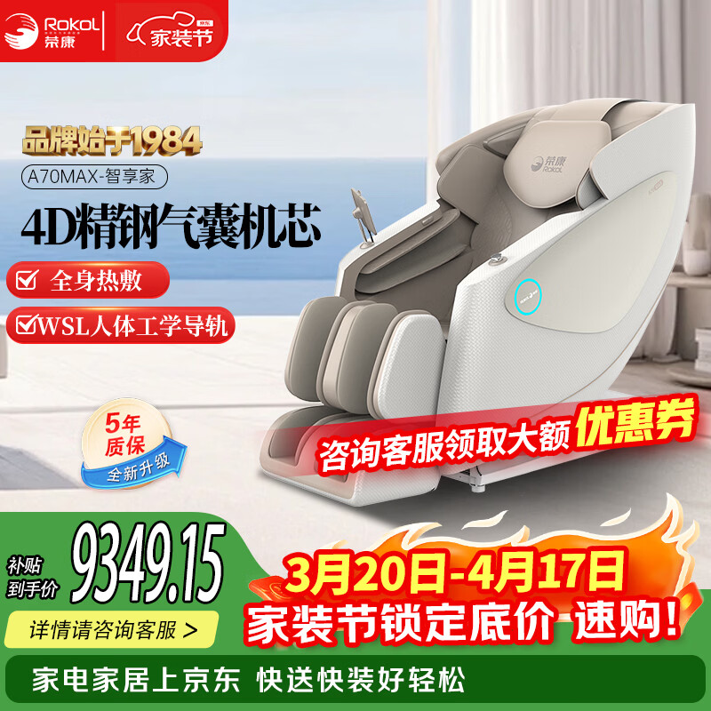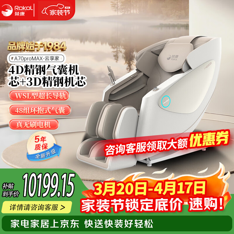 荣康A70MAX新款家用4D机芯智能按摩椅2026家用太空舱全身按摩沙发多功能椅子 【4D精钢气囊机芯】-A70MAX-珠光白