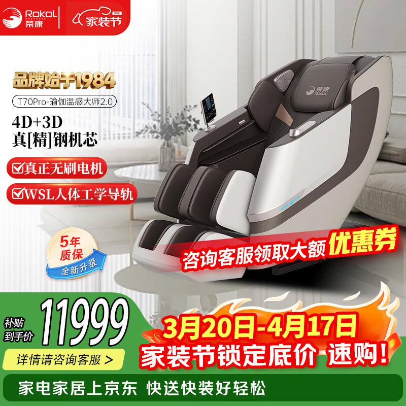 荣康【爆款热销】T70Promax按摩椅全身家用电动全自动沙发送父母老人WSL导轨精钢双机芯2026 【4D+3D双机芯】-T70pro-暮野棕