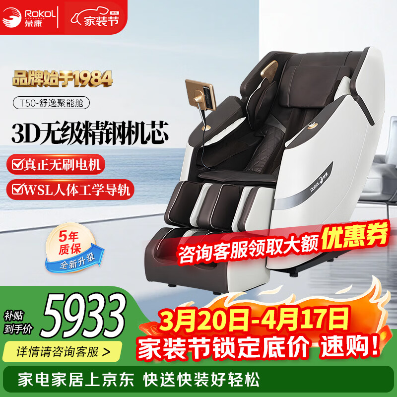 荣康【爆款热销】荣康T50按摩椅全身家用电动送父母老人礼物WSL导轨精钢机芯2026推荐 【3D精钢机芯】-T50-尊雅咖