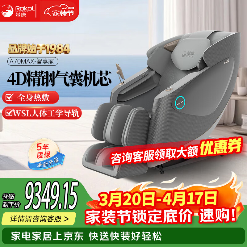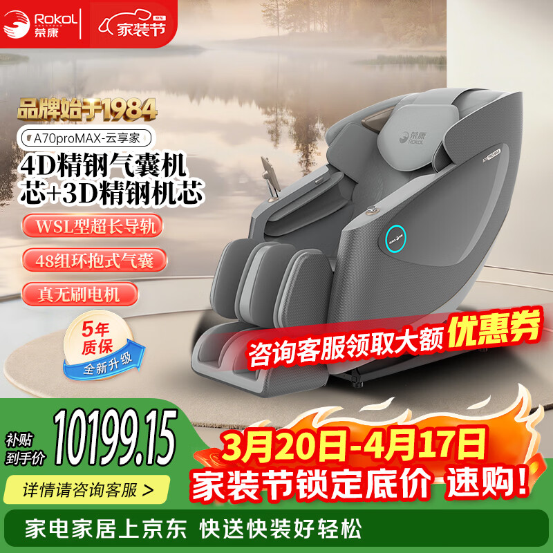 荣康A70MAX新款家用4D机芯智能按摩椅2026家用太空舱全身按摩沙发多功能椅子 【4D精钢气囊机芯】-A70MAX魅影灰