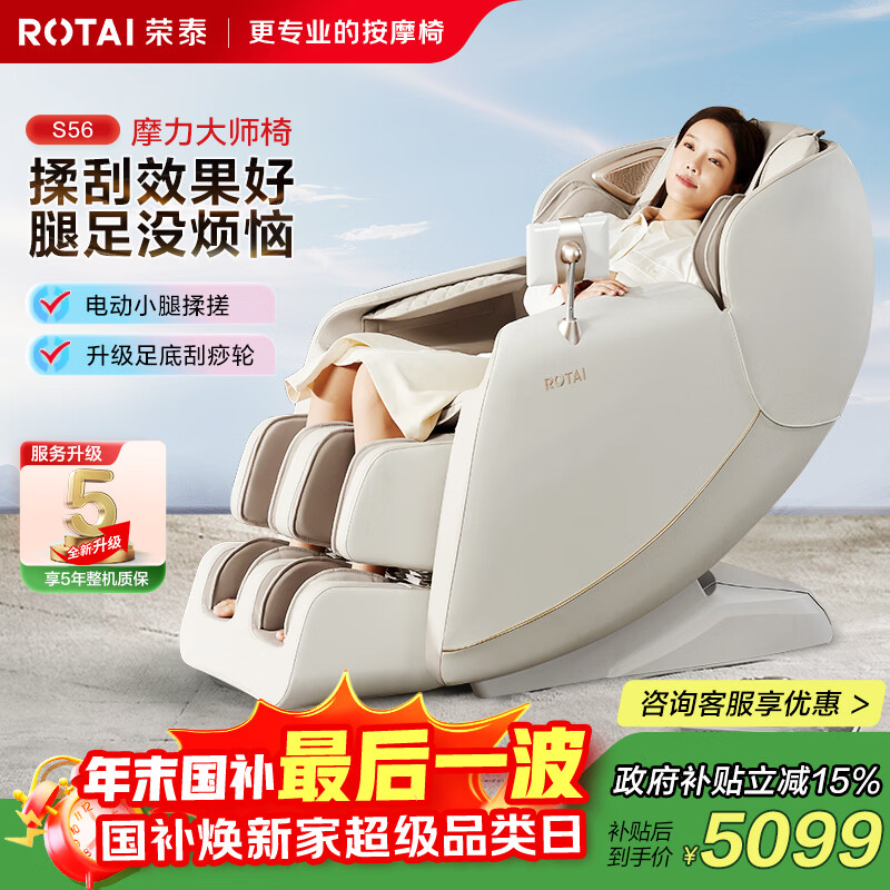 荣泰(RONGTAI)按摩椅十大按摩椅品牌太空舱2025全身按摩家用按摩椅零重力政府补贴养生按摩沙发 S56pro杏仁灰(现货直发)