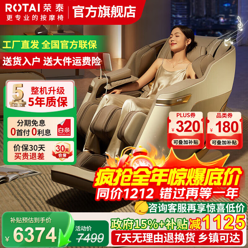 荣泰(RONGTAI)按摩椅家用全身按摩椅全自动太空舱零重力十大按摩椅品牌2025年补贴送老人养生按摩沙发A39/pro 咖啡色