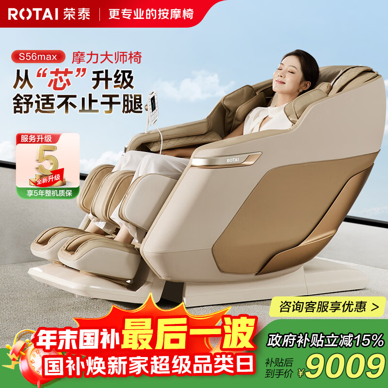 荣泰(RONGTAI)按摩椅家用全身按摩全自动太空舱零重力2025国家补贴送爸妈实用圣诞礼物腰部电动多功能沙发摇摇椅 S56Pro舒适升级4D机芯+22套程序+腿足按摩