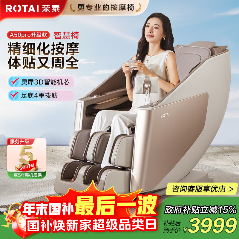 荣泰(RONGTAI)按摩椅家用全身按摩椅全自动太空舱零重力十大按摩椅品牌2025年补贴送老人养生按摩沙发A39/pro 新品上市A39pro