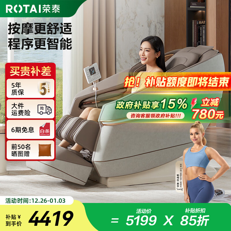 荣泰(RONGTAI)按摩椅家用全身按摩椅全自动太空舱零重力十大按摩椅品牌2025年补贴送老人养生按摩沙发A39/pro 砂色