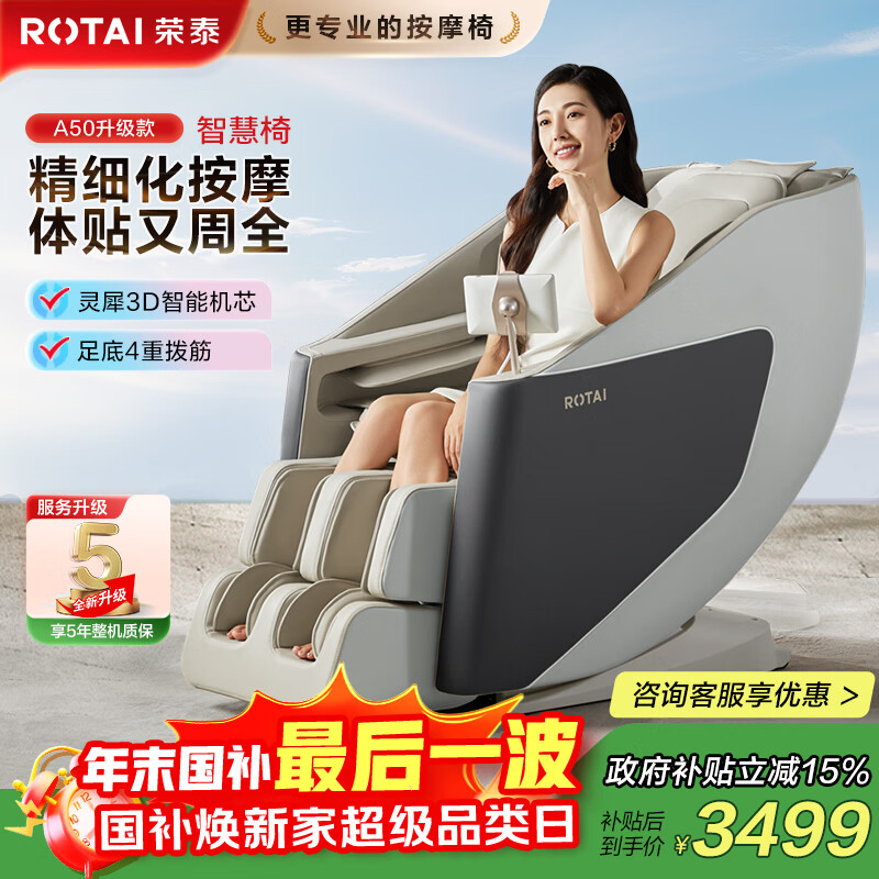 荣泰(RONGTAI)按摩椅十大按摩椅品牌太空舱2025全身按摩家用按摩椅零重力政府补贴养生按摩沙发 A52Pro烟青灰