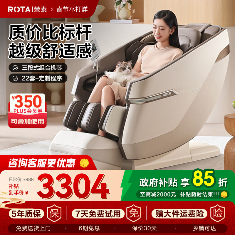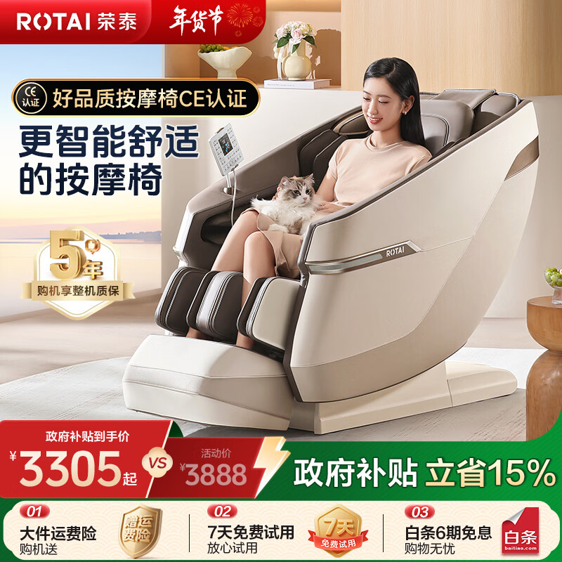 荣泰(RONGTAI)按摩椅家用全身按摩椅全自动太空舱零重力十大按摩椅品牌2026年补贴送老人养生按摩沙发A39/pro 砂色