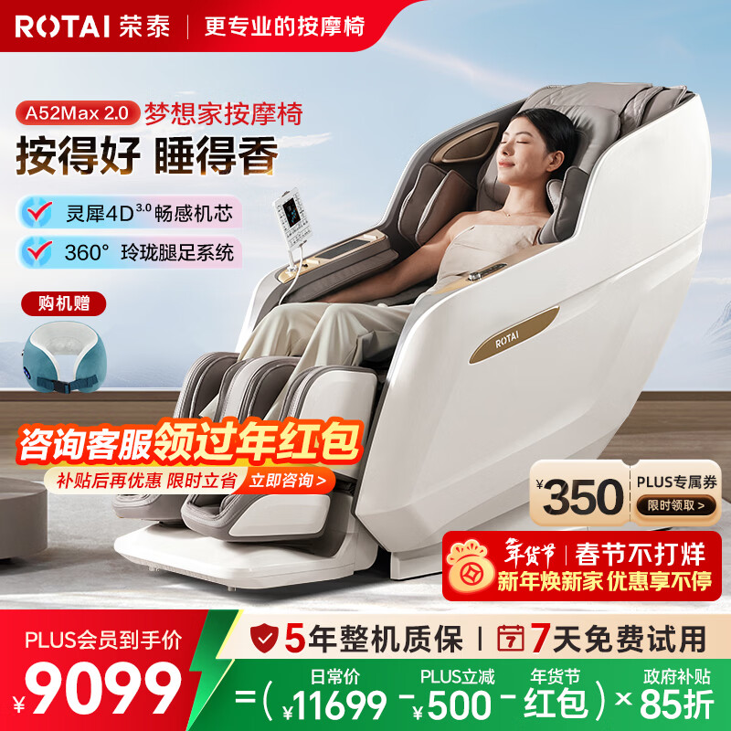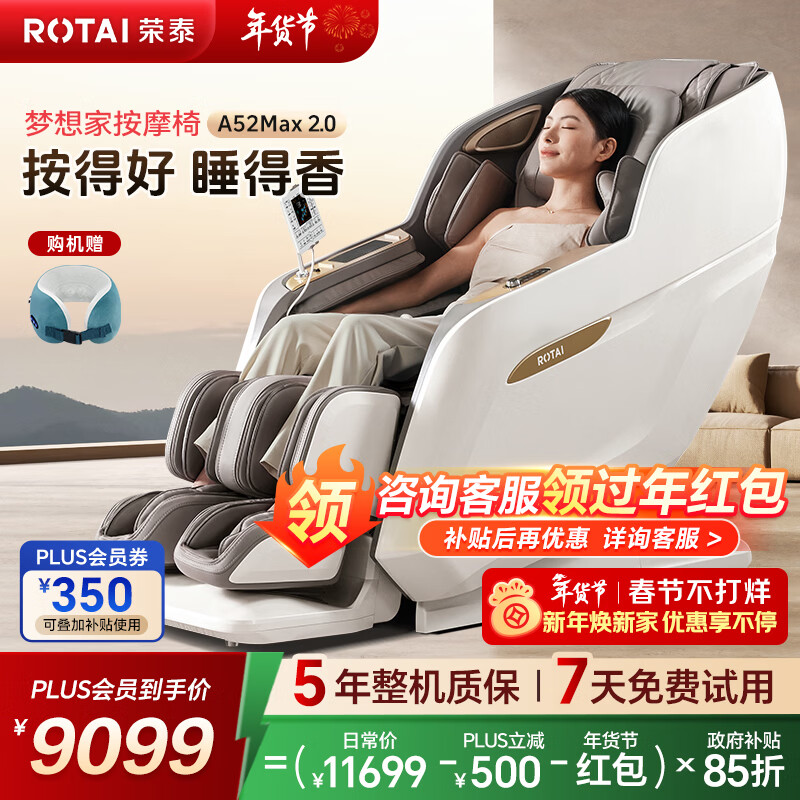 荣泰(RONGTAI)按摩椅家用全身按摩椅全自动太空舱零重力十大按摩椅品牌2026年国家补贴送老人养生按摩沙发A52Max 【爆款新品】A52MAX2.0