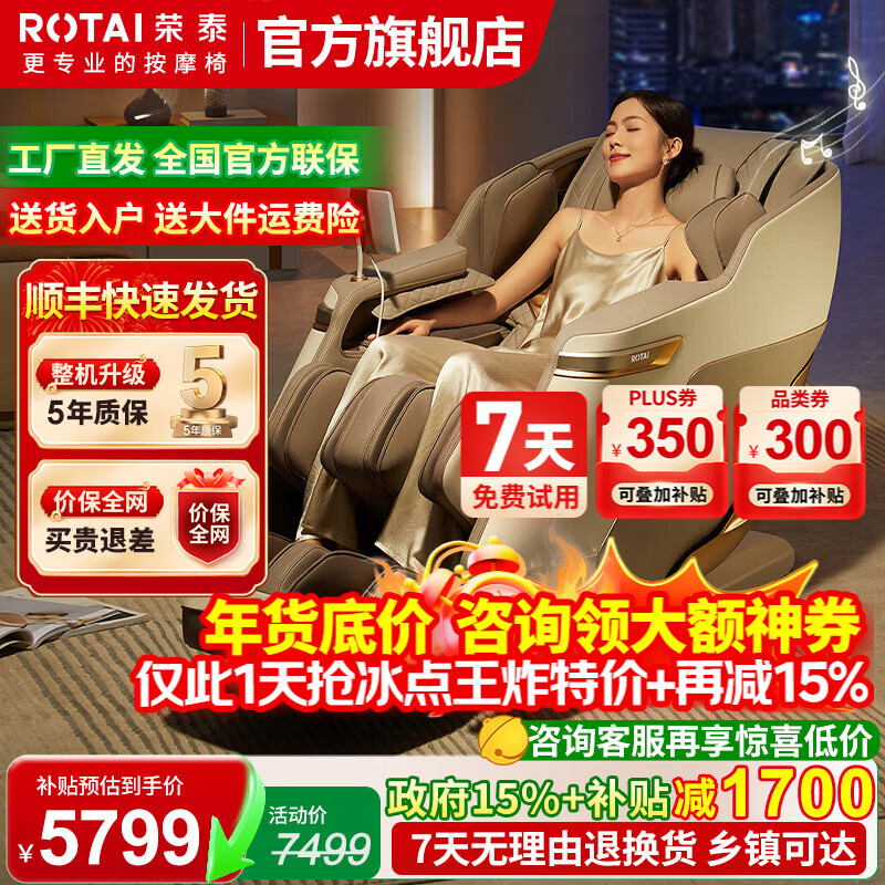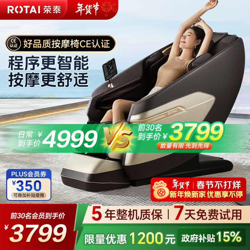 荣泰(RONGTAI)按摩椅家用全身按摩椅全自动太空舱零重力十大按摩椅品牌2026年补贴送老人养生按摩沙发A39/pro 咖啡色