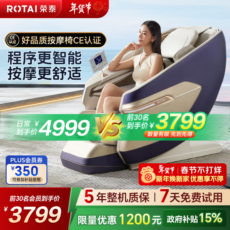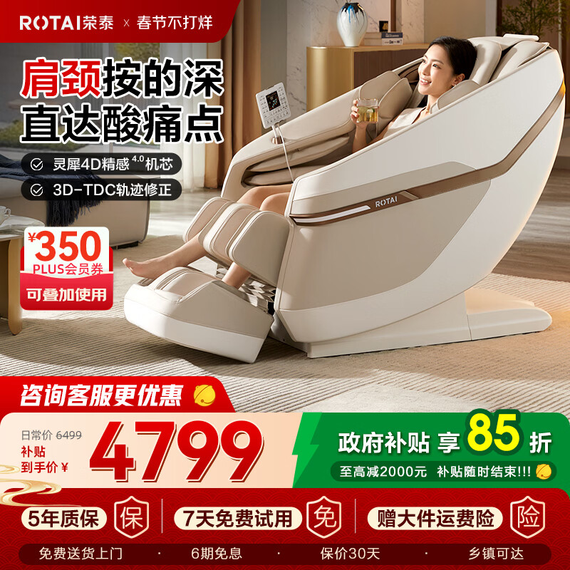 荣泰(RONGTAI)按摩椅家用全身按摩椅全自动太空舱零重力十大按摩椅品牌2026年补贴送老人养生按摩沙发A39/pro 新品上市A39pro