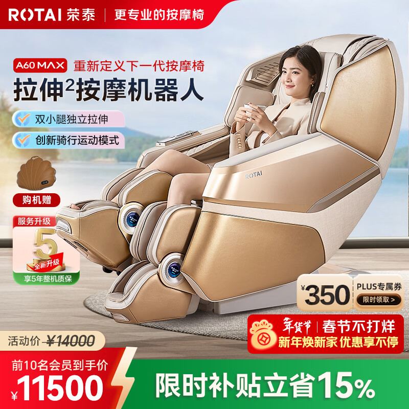 荣泰(RONGTAI)按摩椅家用全身按摩椅全自动太空舱零重力十大按摩椅品牌2026年限时补贴送老人豪华按摩沙发 A60Max摩登米色